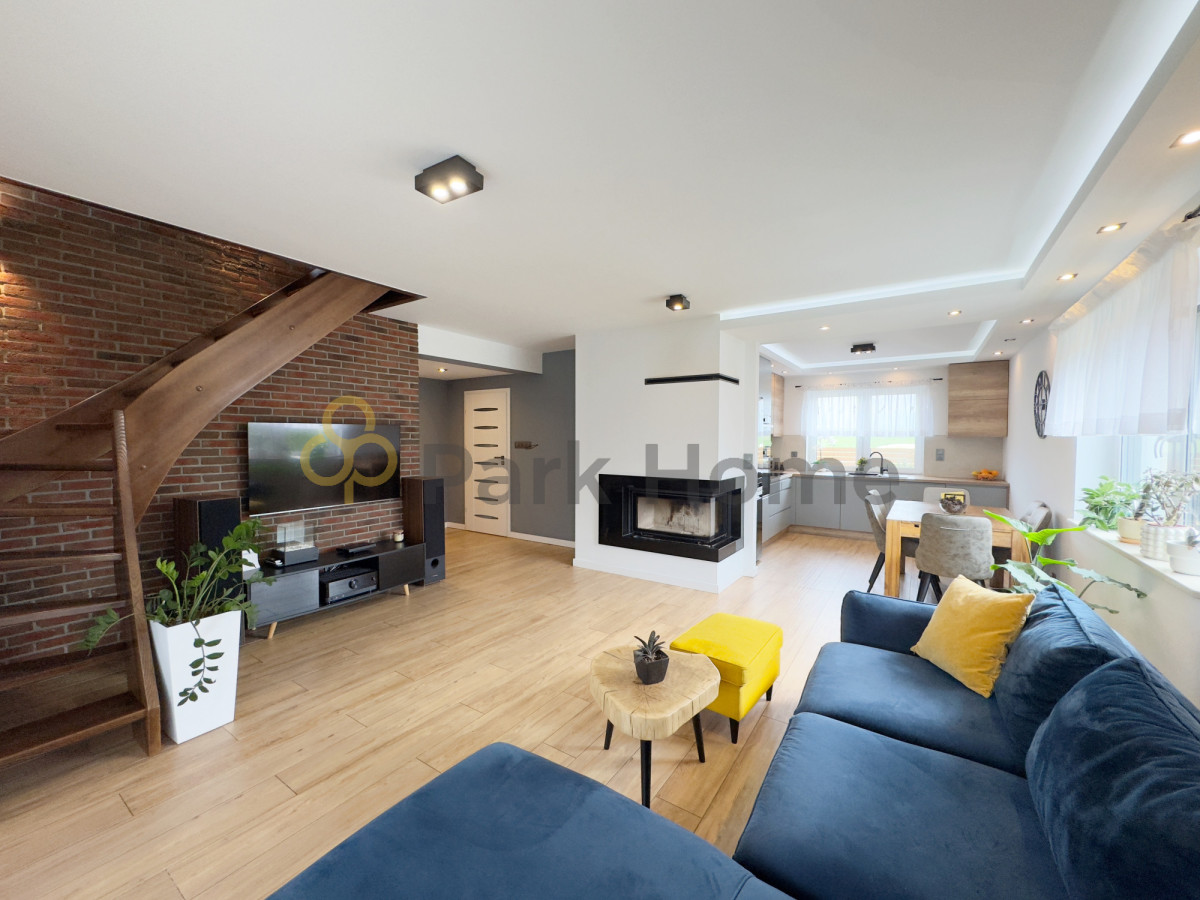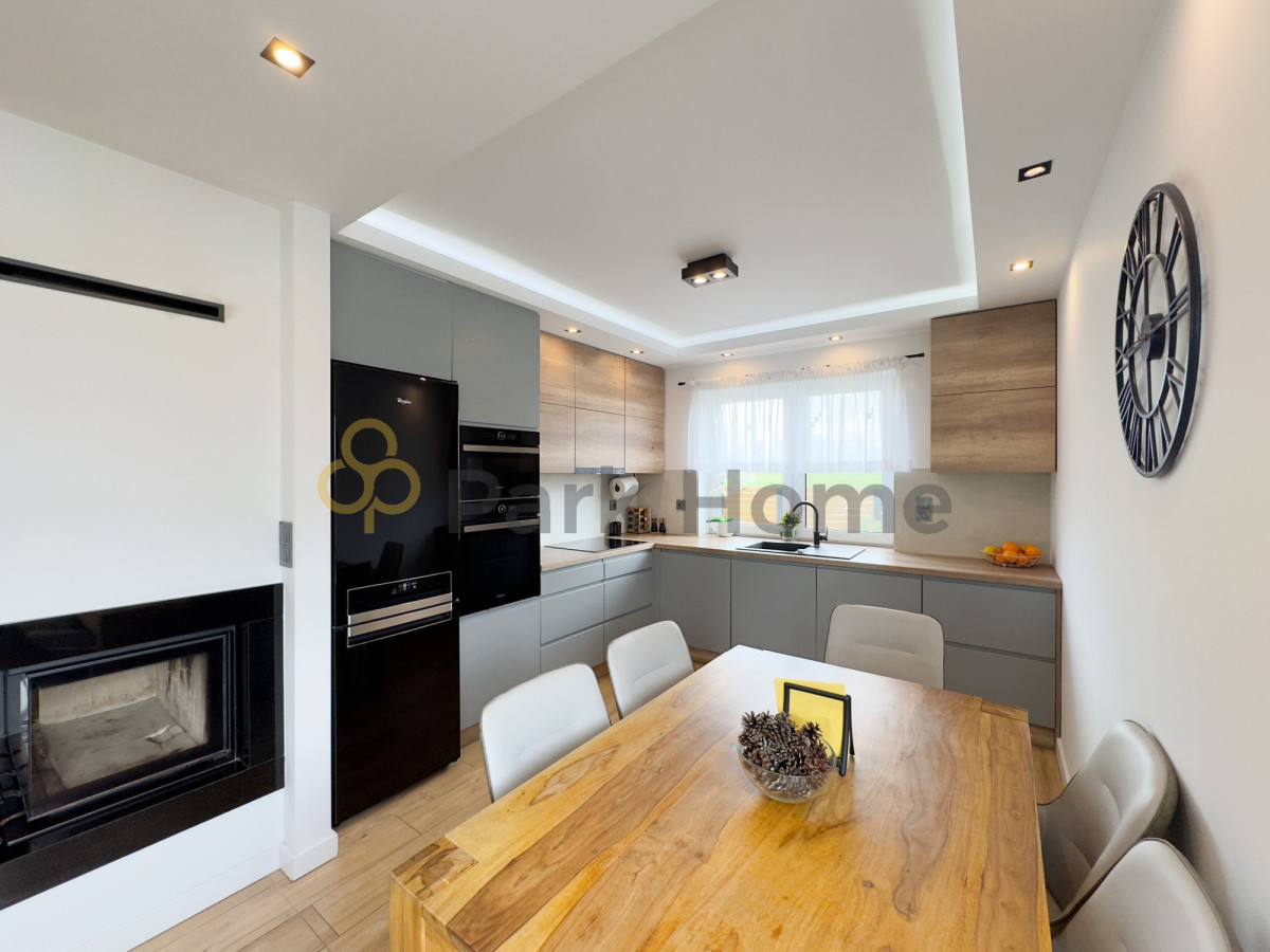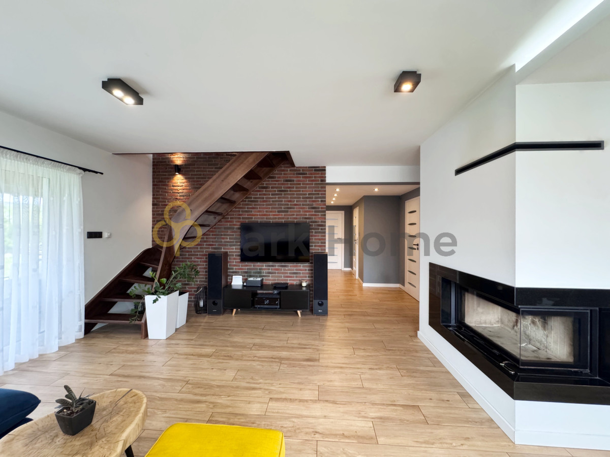 - przestronny salon kominkiem i aneksem kuchennym z meblami i AGD