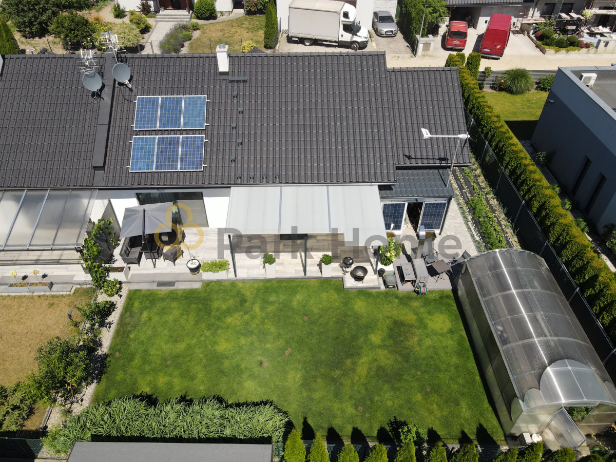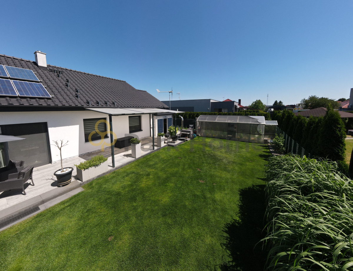 • Ogród wyposażony jest w nowoczesny system nawadniania trawnika, który można łatwo kontrolować zdalnie - nawet za pomocą aplikacji w telefonie, co pozwala na wygodne podlewanie również podczas nieobecności.