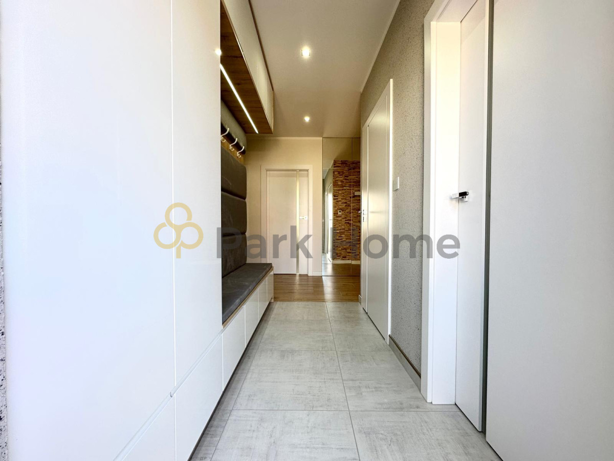 • Kuchnia wykonana przez stolarza, wyposażona w system podnośników i zawiasów najwyżej jakości, firmy "Blum" - w pełnej zabudowie z kompletem sprzętów AGD (lodówka i zamrażalnik / zmywarka / piekarnik - w zabudowie, płyta indukcyjna, okap, pralka z suszarką oraz telewizor).