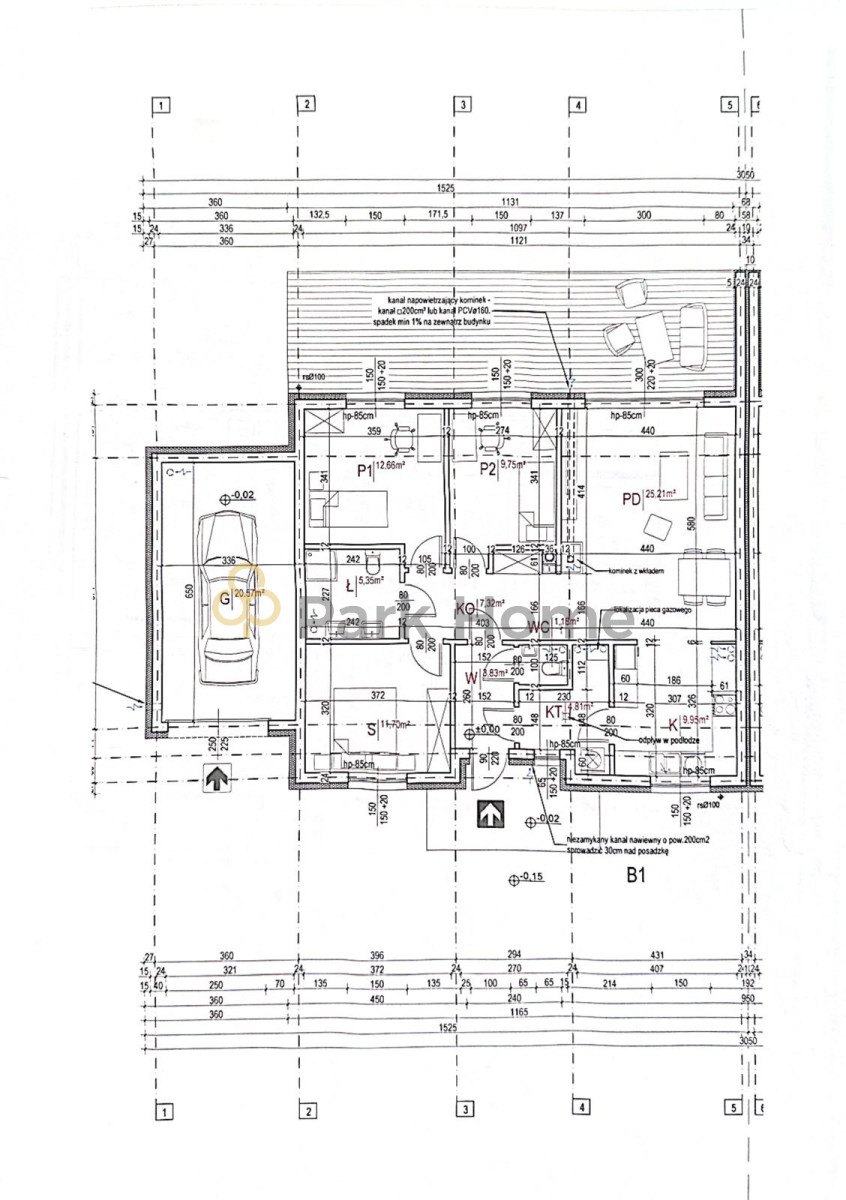 Na parterze o pow. 112,33 m² rozmieszczono: