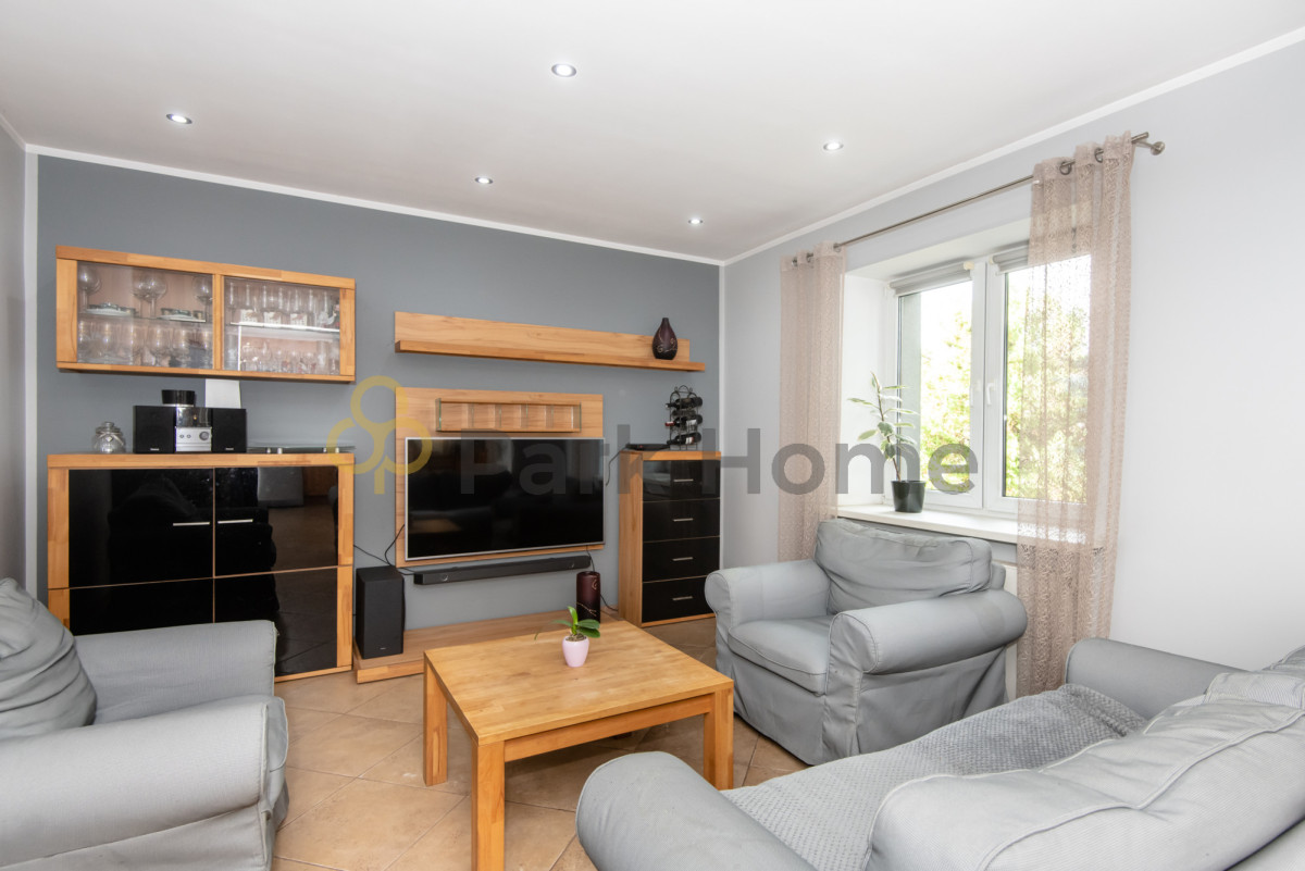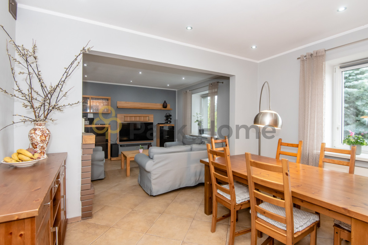 Dom został wybudowany przed laty, jednak w latach 2004-2006 przeszedł gruntowny remont i został rozbudowany. Wymieniono dach, okna, a także instalacje elektryczną, wodną i ogrzewanie. W nowszej części domu urządzono biuro, siłownię, łazienkę oraz kotłownię. Duży garaż i pomieszczenia gospodarcze to najnowsza inwestycja. Układ pomieszczeń umożliwia połączenie domu z miejscem pracy - przestrzeń z niezależnym wejściem doskonale sprawdzi się jako biuro, gabinet lub inne pomieszczenie według indywidualnych potrzeb.