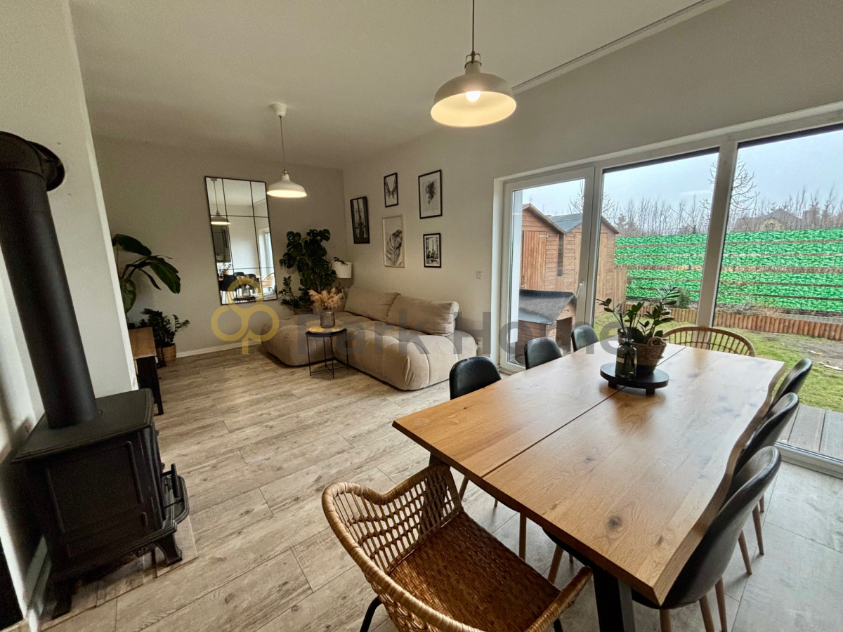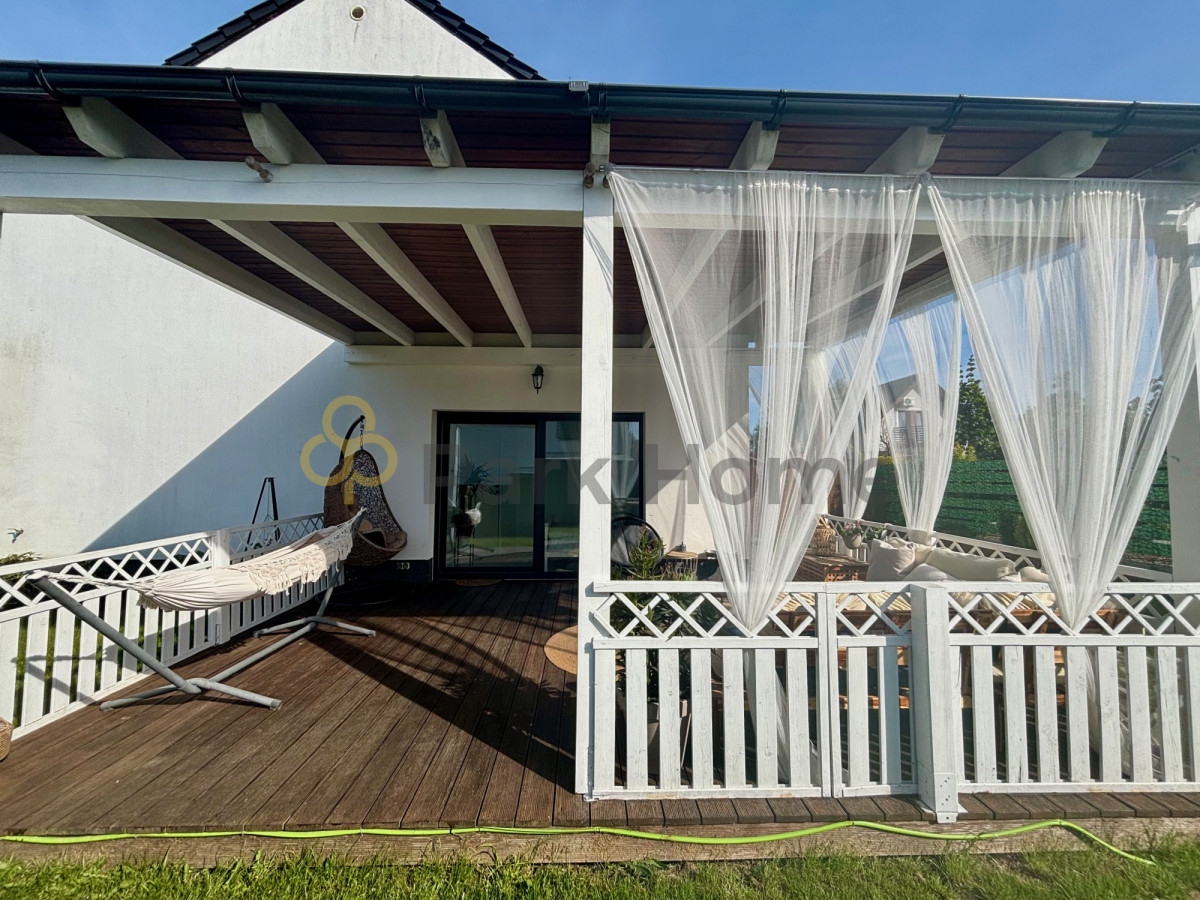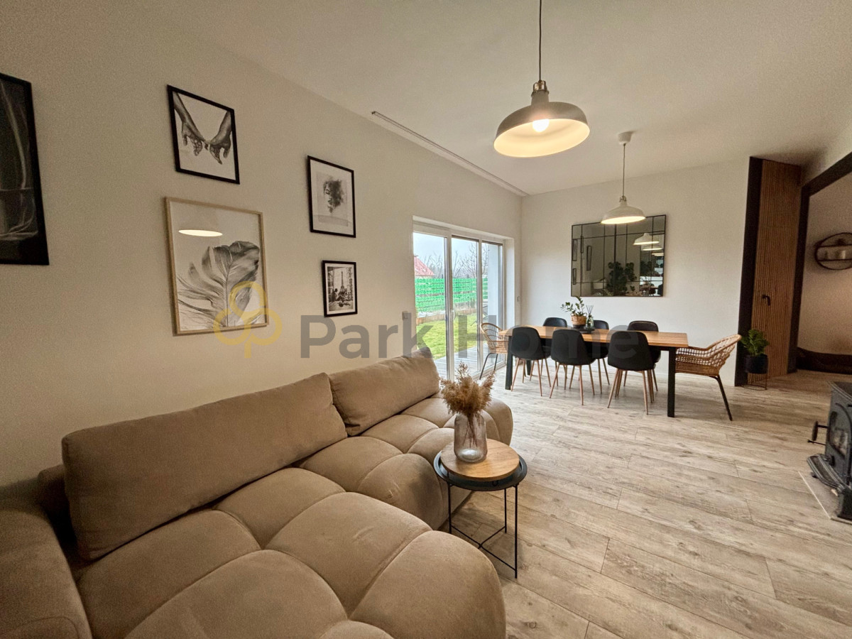 Dom w pełni wykończony i zaaranżowany przez obecnych właścicieli. Okna trzyszybowe wraz z roletami zewnętrznymi sterowanymi elektrycznie, drzwi antywłamaniowe, brama wjazdowa do garażu, piec gazowy, ogrzewanie gazowe, podłogowe i kominek. W pełni zaaranżowany ogród ze strefą relaksu na tarasie, zadbanym trawnikiem i nasadzeniami.