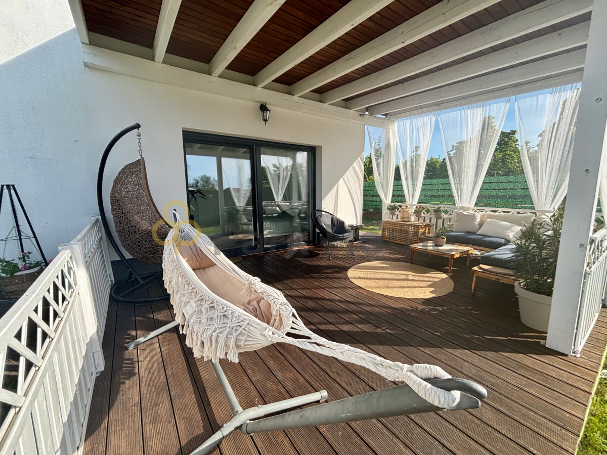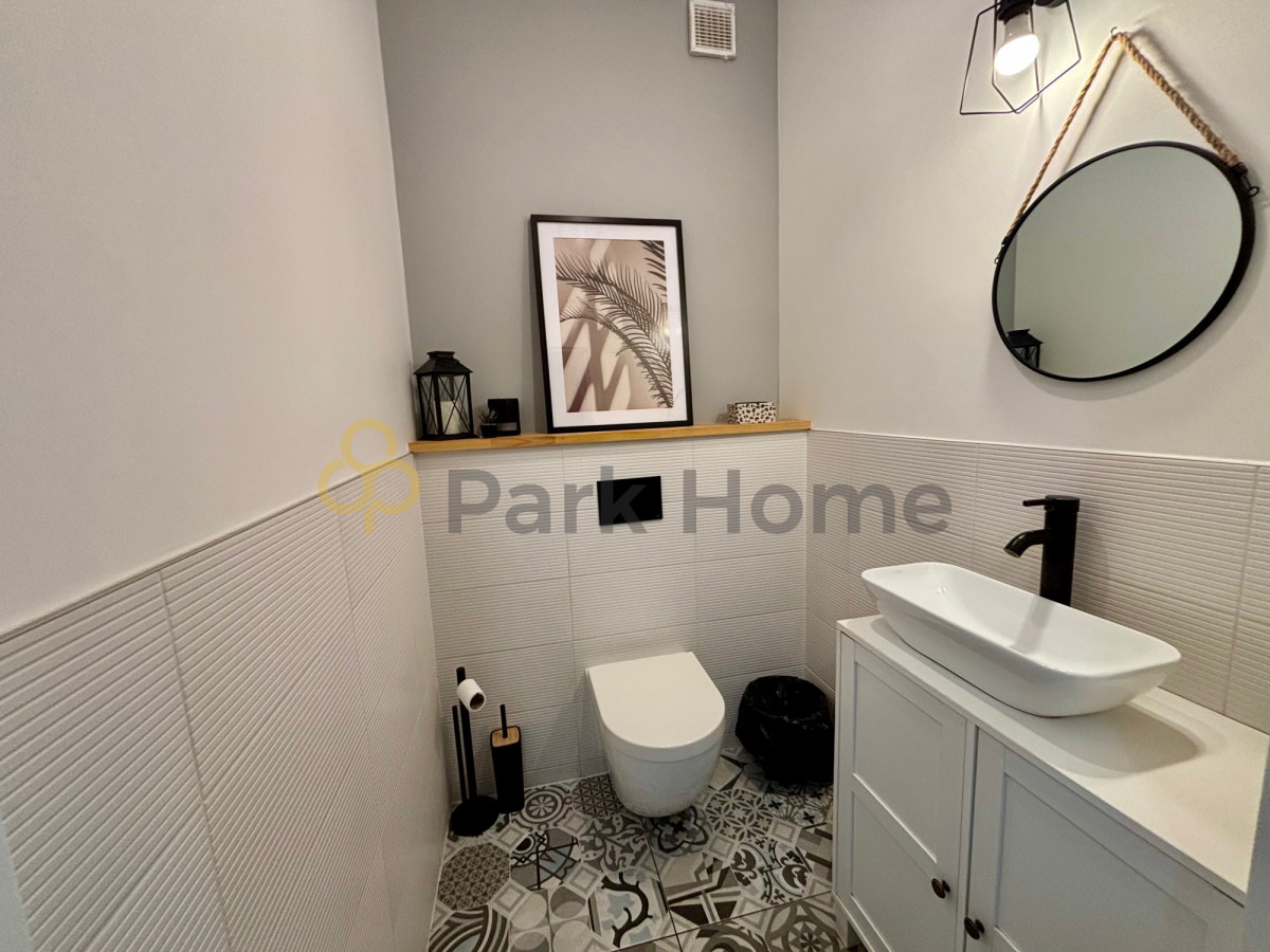 Prezentowana nieruchomość to nowoczesna bryła budynku w zabudowie bliźniaczej w kameralnej inwestycji stanowiącej nowoczesne osiedle domów jednorodzinnych. Osiedle składa się z 9 budynków w zabudowie bliźniaczej, teren osiedla ogrodzony co zapewnia bezpieczeństwo i prywatność mieszkańcom. Bryła budynku połączona garażami została dodatkowo zmodyfikowana wykorzystując powierzchnię nad garażem na dodatkowy taras, na który prowadzi wyjście z sypialni na piętrze budynku.