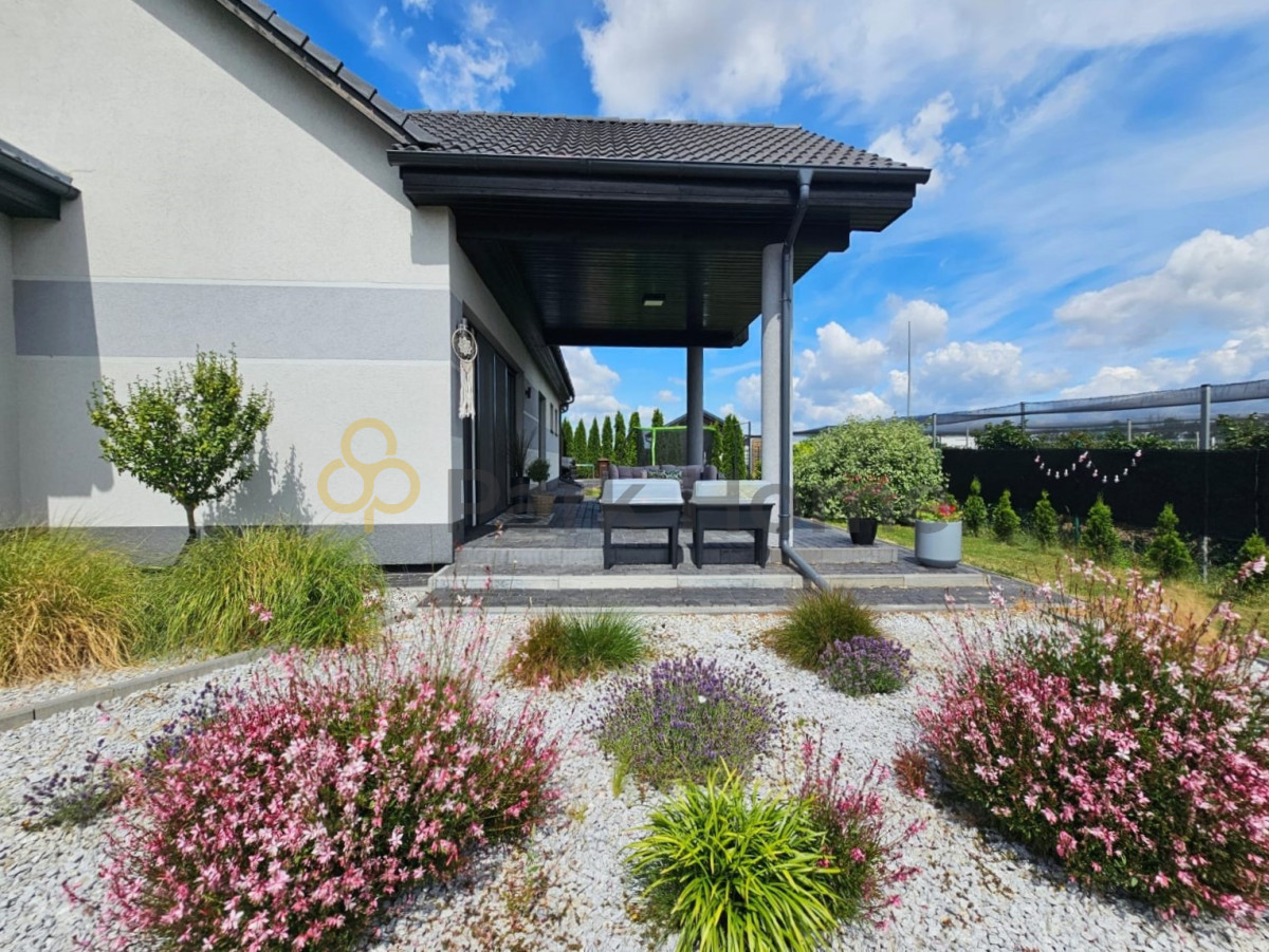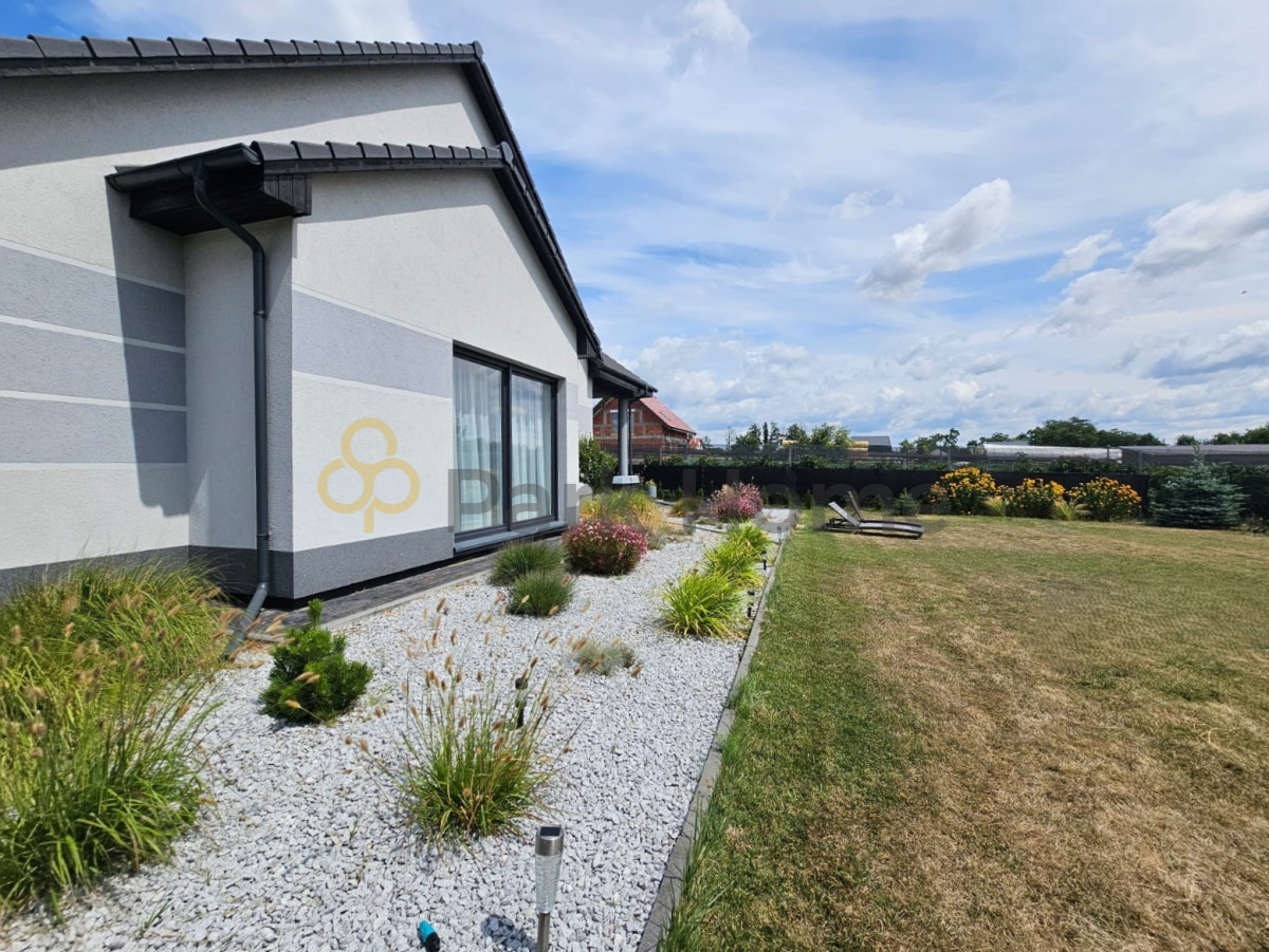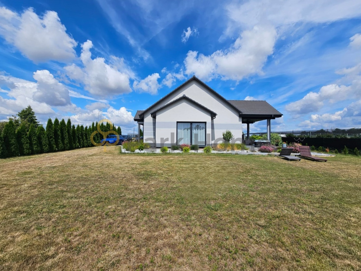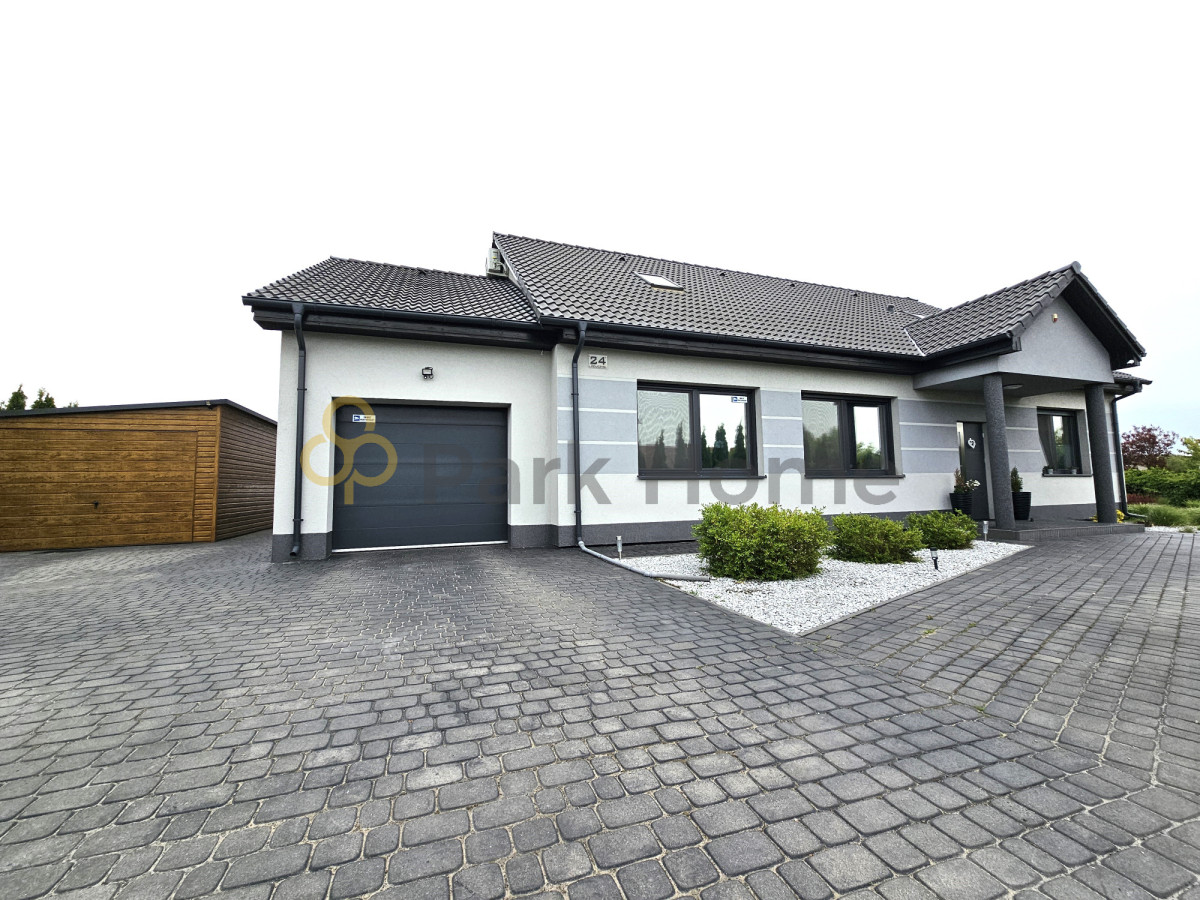 Teren wokół domu w całości ogrodzony. Brama wjazdowa oraz garażowa na pilota.