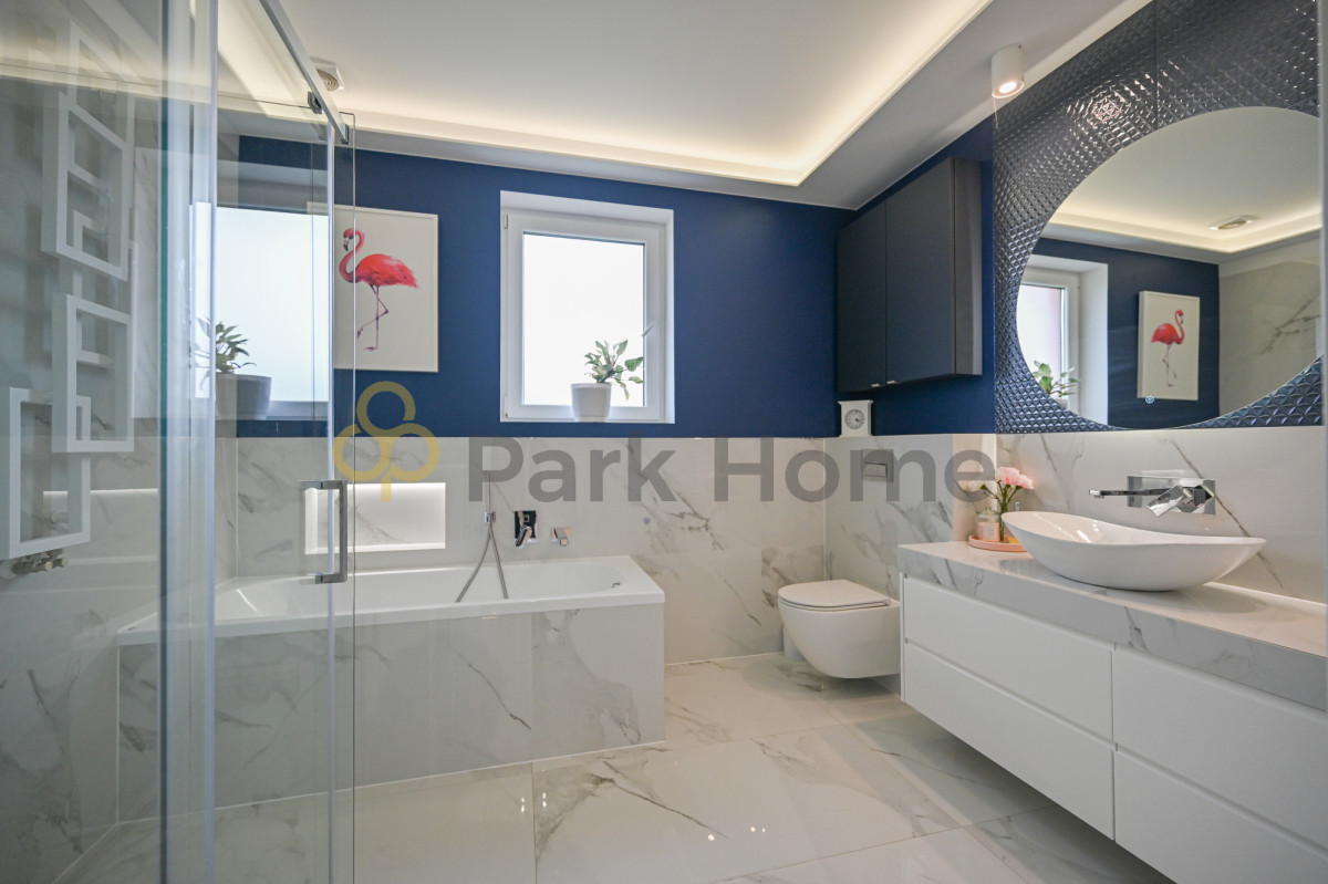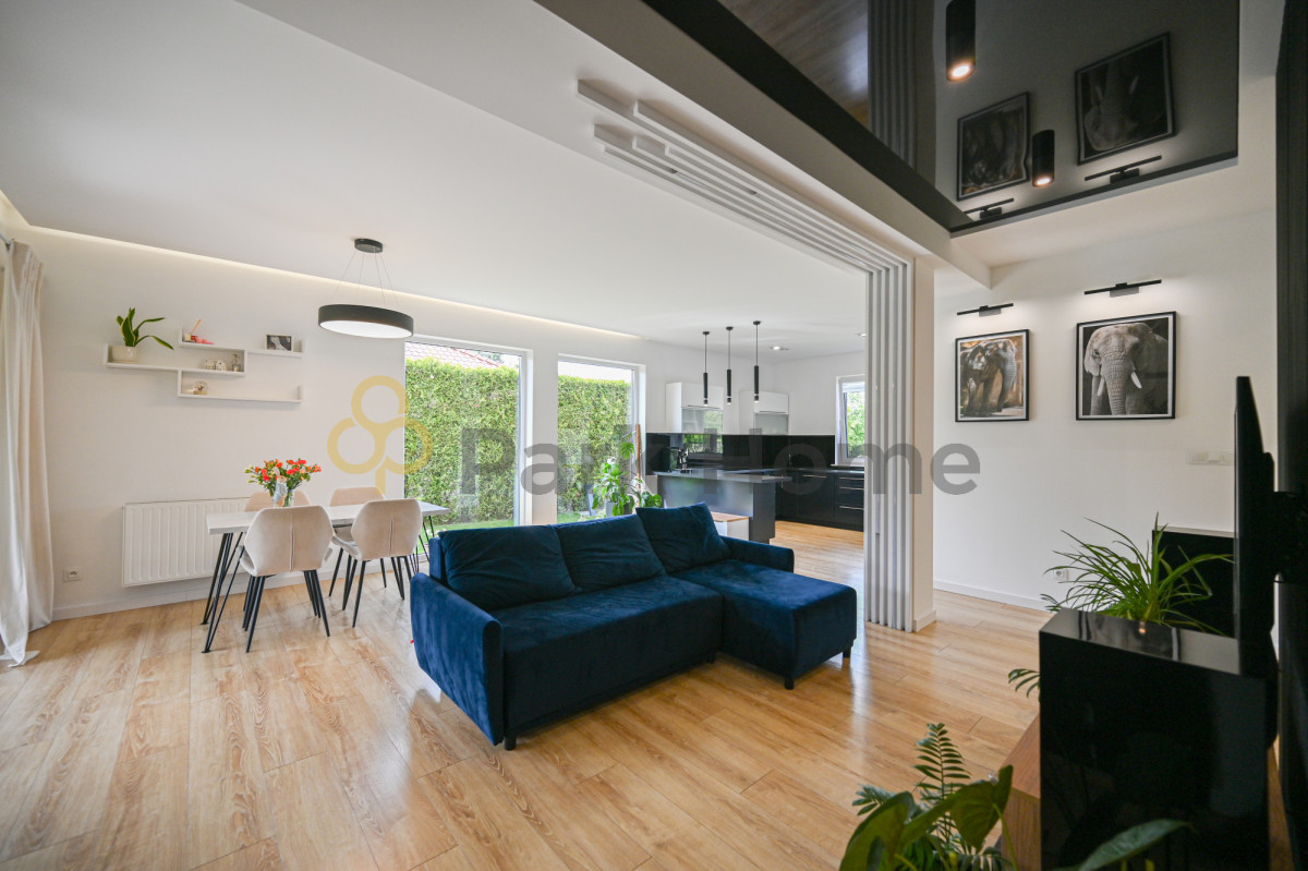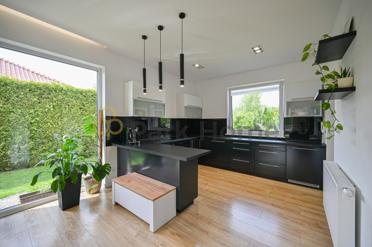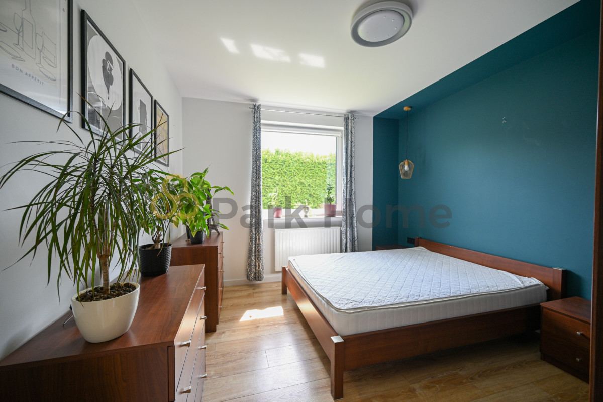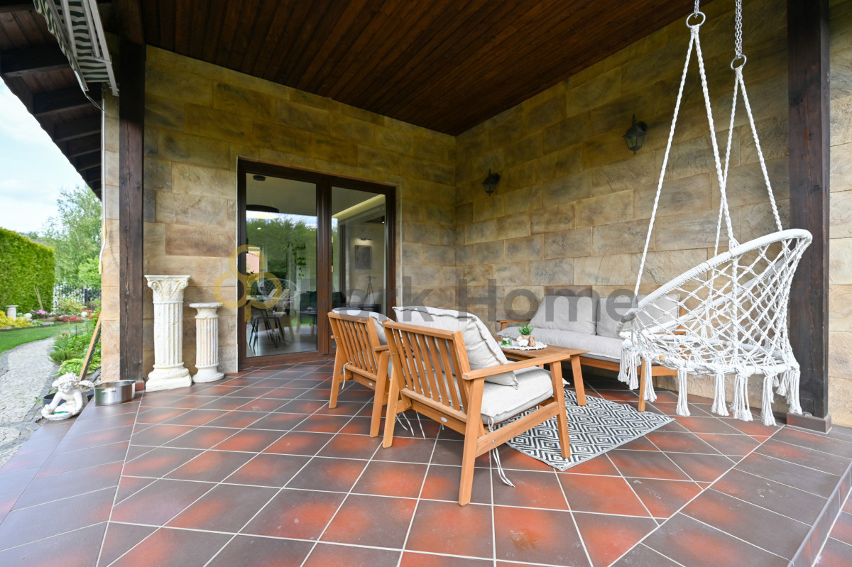 W okół domu piękny ogród otoczony nasadzeniami oddzielającymi od sąsiednich działek co zdecydowanie wpływa na komfort i poczucie prywatności. Na terenie zielonym jest rozprowadzone nawodnienie zasilane bezpośrednio ze studni głębinowej. Działka jest w pełni zagospodarowany w ścieżki, oświetlenie a także część rekreacyjną. Dodatkowym atutem jest pomieszczenie gospodarcze w raz z drewutnią.