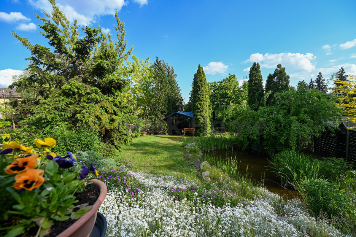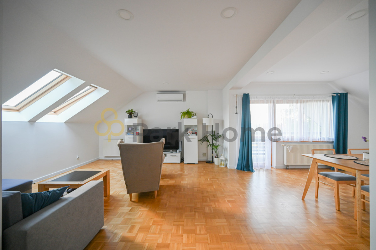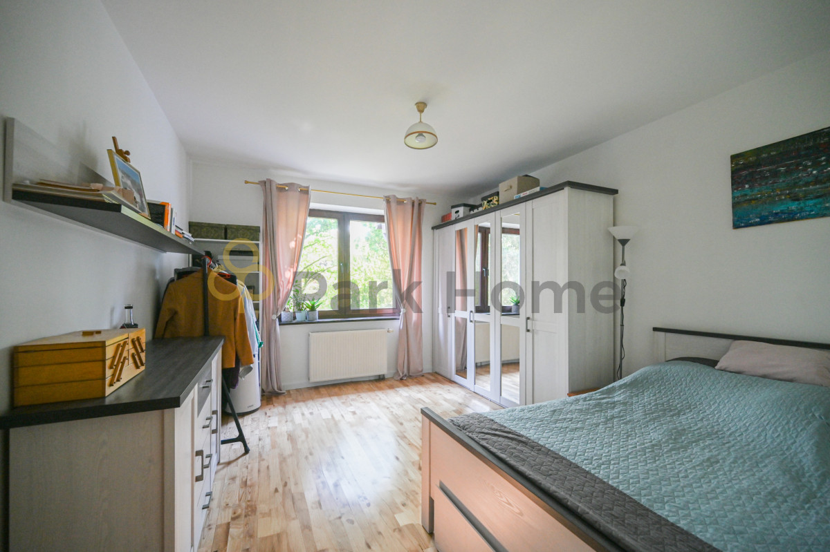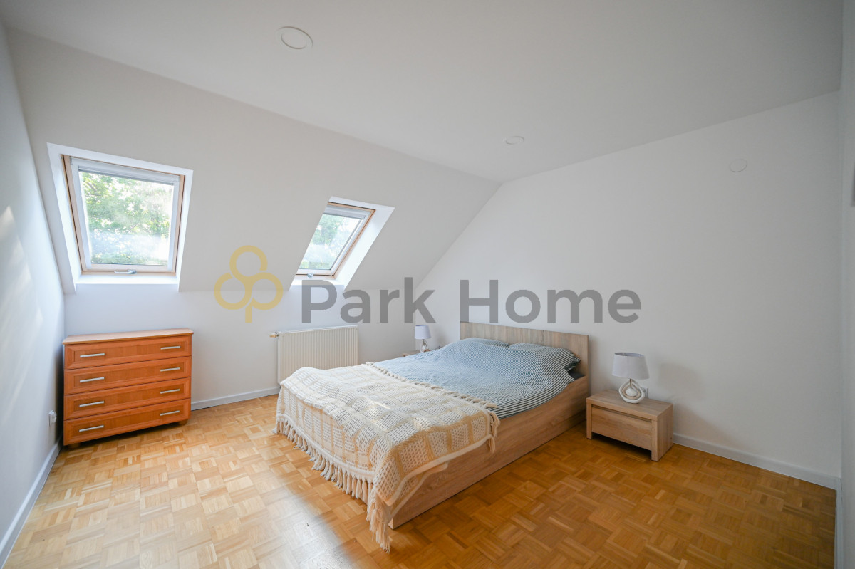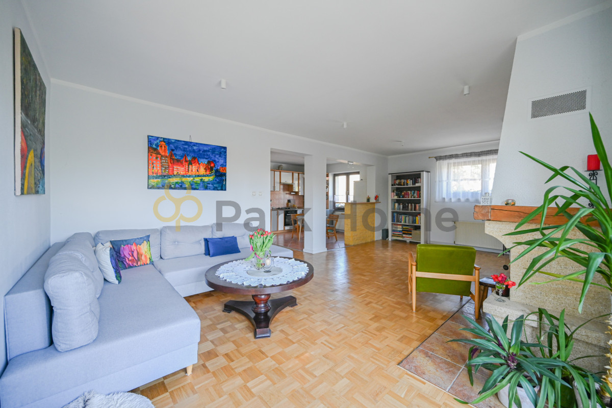 Przedstawiam Państwu trzykondygnacyjny dom wolnostojący wybudowany w 2000 roku. Powierzchnia użytkowa części mieszkalnej wynosi 220,2 mkw. (po podłodze 245 mkw.) Powierzchnia całkowita wraz z piwnicą (155,9 mkw.) wynosi łącznie 409,90 mkw. W środku obecnie funkcjonują dwa niezależne od siebie mieszkania, dla których zostały wydane zaświadczenia o samodzielności lokali. Część wspólną stanowią wejście i klatka schodowa. Bardzo łatwo wykorzystać dom dla potrzeb jednej, dużej rodziny. Pokoje na piętrze zostały wyremontowane około 3 lata temu, gdzie została wykonana m.in. nowa kuchnia na wymiar, łazienka, wycyklinowano wszystkie parkiety oraz wymieniono okna i zamontowano klimatyzacje. Na parterze 3 lata temu wycyklinowano wszystkie parkiety, odmalowano ściany oraz wyremontowano łazienkę. Do nieruchomości przynależy w pełni ogrodzona, zielona, częściowo zadrzewiona działka o powierzchni 703 mkw. Znajduje się na niej zadaszona wiata, oczko wodne, nasadzenia oraz trawnik. Dojście do ogrodu prowadzi od głównej drogi lub z tarasu. Każdy z dwóch garaży posiada oddzielną automatyczną bramę i utwardzony podjazd, na którym mogą zaparkować kolejne samochody. Dojazd do posesji stanowią tylko drogi asfaltowe. Z mieszkania na piętrze jest wejście na strych przeznaczony do zaadaptowania pod przestrzeń magazynową.