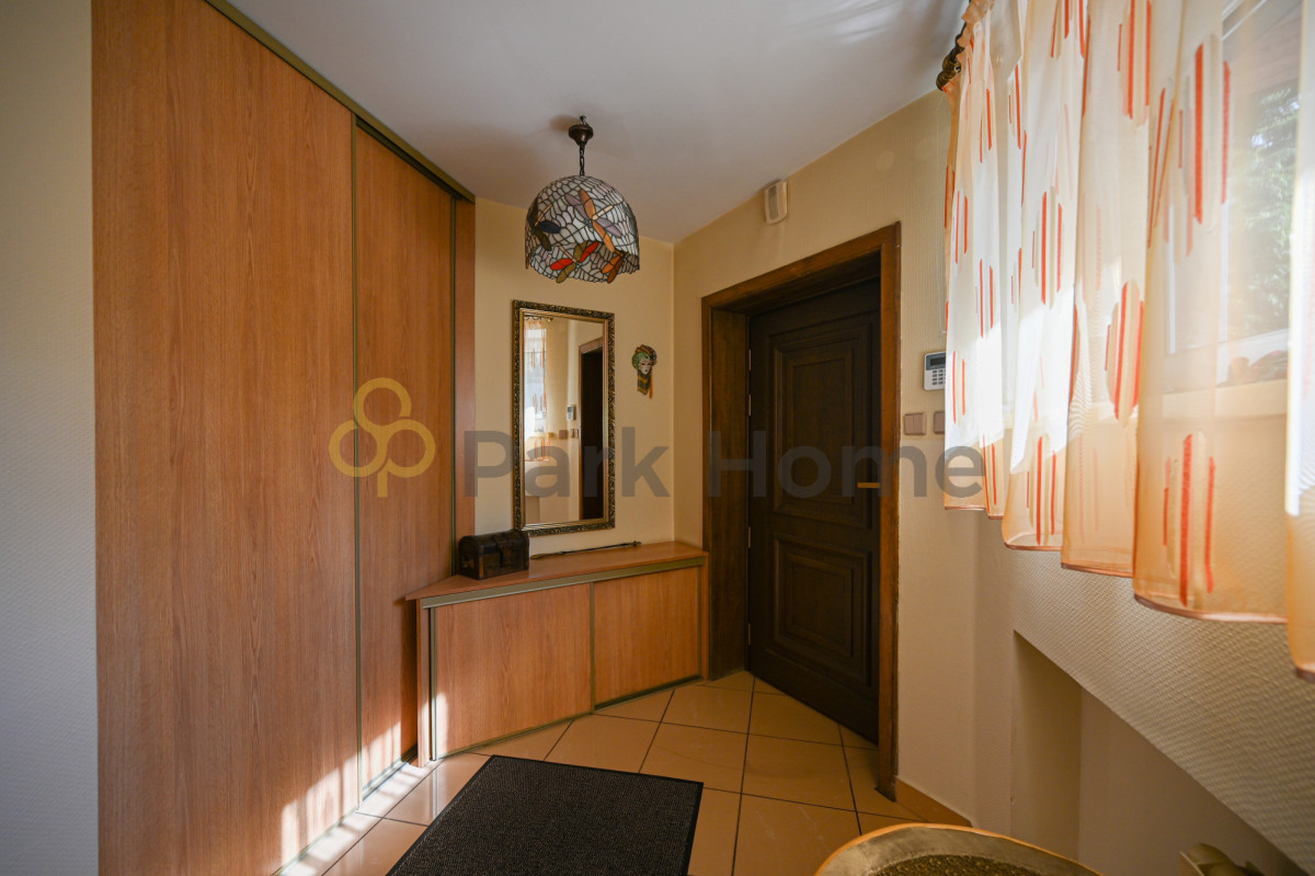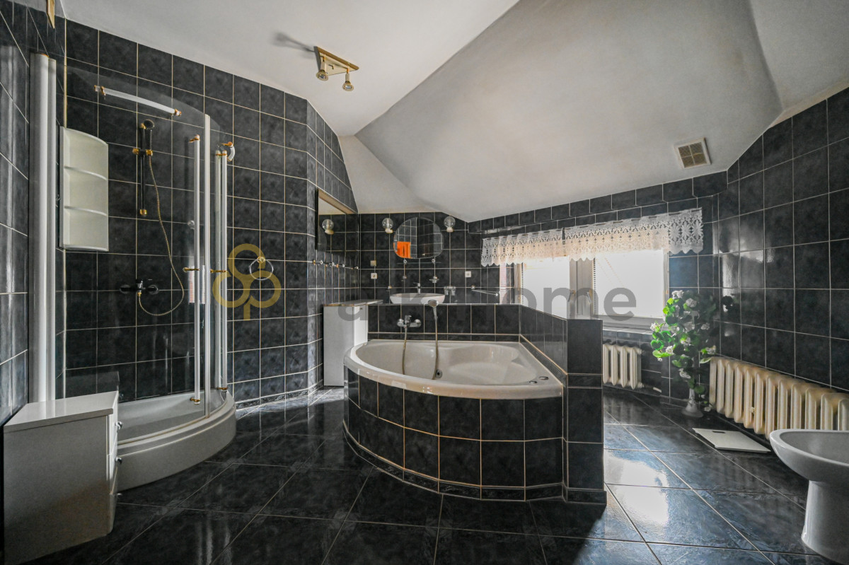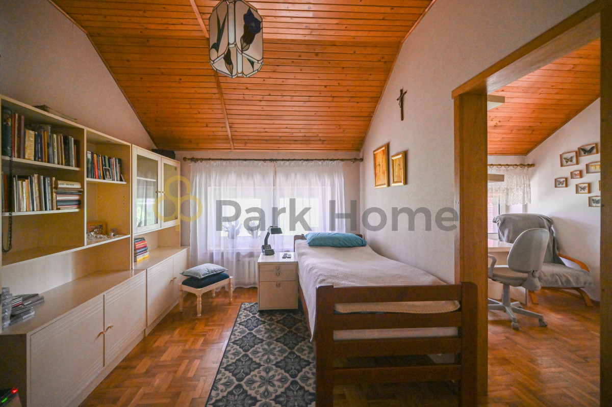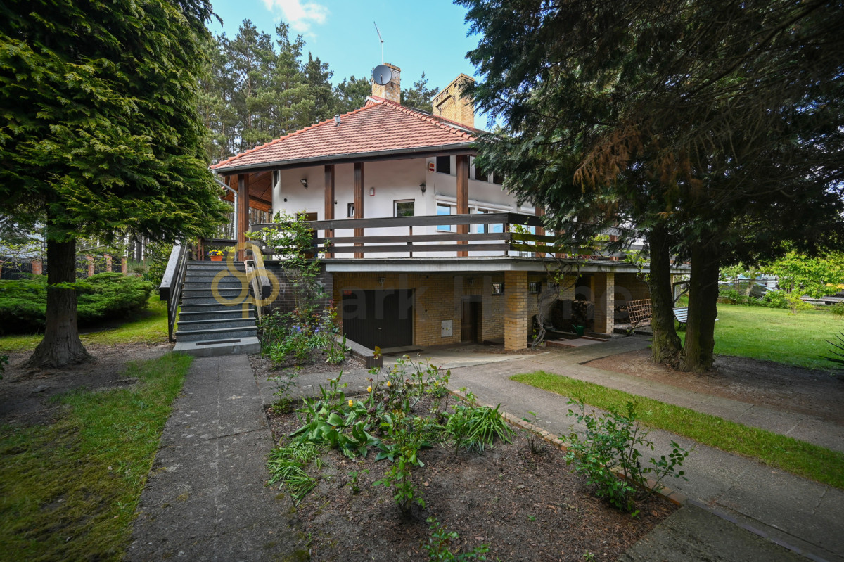 Przedstawiam Państwu trzykondygnacyjny dom wolnostojący wybudowany w 1993 roku. Powierzchnia użytkowa części mieszkalnej wynosi 177,31 mkw. Powierzchnia całkowita wraz z piwnicą (117,54 mkw.) wynosi łącznie 294,85 mkw. Do nieruchomości przynależy w pełni ogrodzona, zielona, częściowo zadrzewiona działka o powierzchni 1 664 mkw. Znajduje się na niej sporo miejsca do zagospodarowania w basen, dodatkową wiatę ogrodową, samochodową lub pod inne przeznaczenie. Z tyłu posesja graniczy z małym lasem, do którego łatwo się wybrać na spacer, dzięki furtce przygotowanej w ogrodzeniu. Na działce wykonane są dwa wjazdy, w tym jeden prowadzący do szerokiego garażu z bramą automatyczną oraz drugi na działkę. Dojazd stanowią drogi wykonane z kostki brukowej. Dom jest schowany w głębi działki co zwiększa poczucie prywatności, tak samo jak taras położony zdecydowanie powyżej poziomu drogi i zwrócony głównie od słonecznej strony południowej. Dom sprzedawany jest przez pierwszych właścicieli, którzy go wybudowali.
