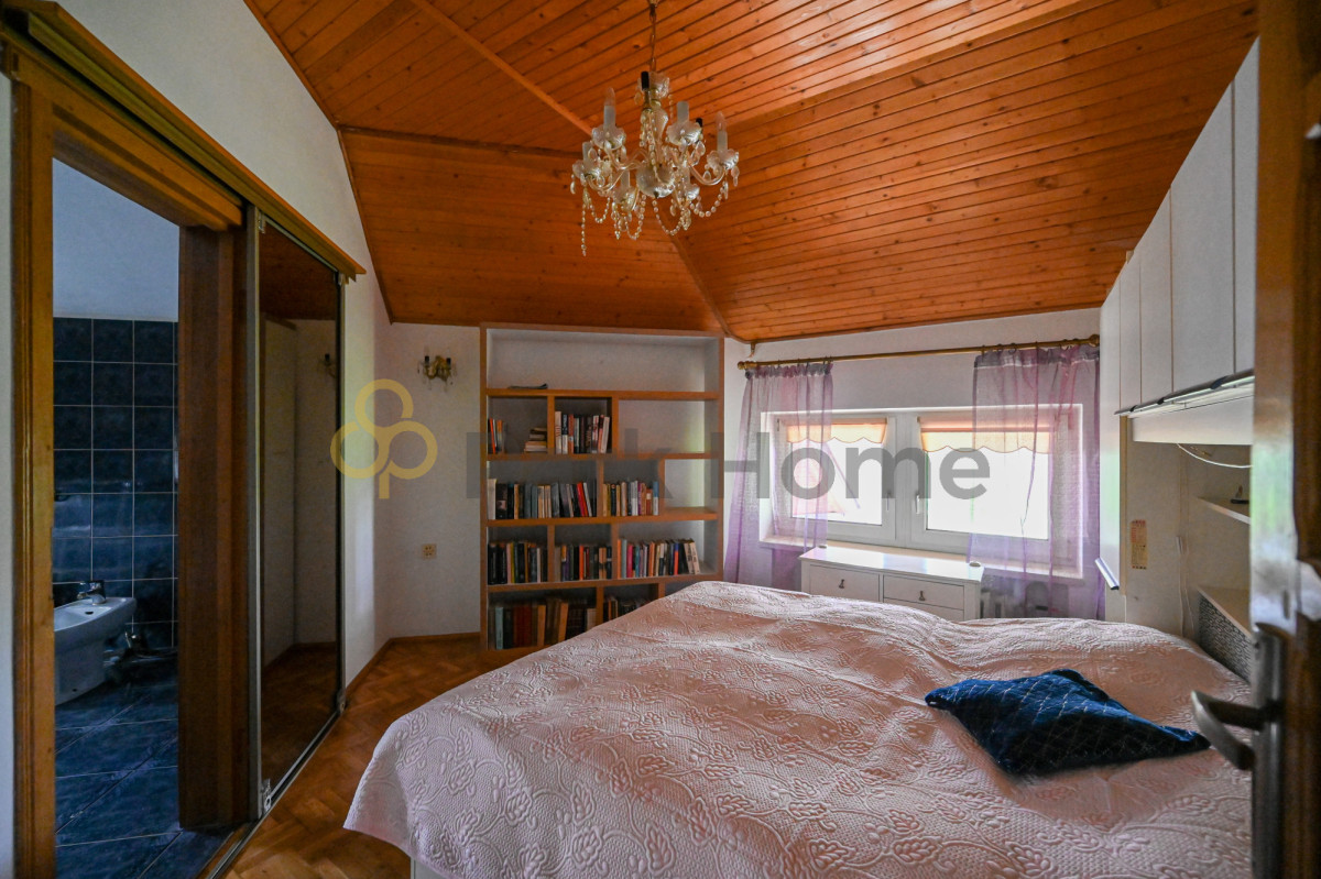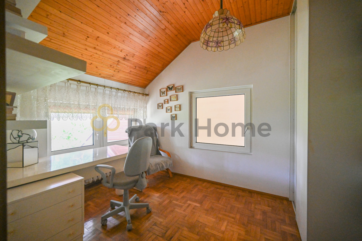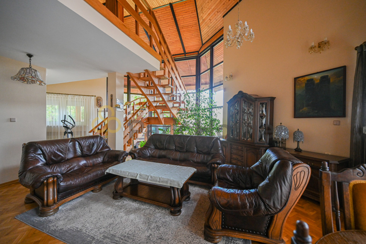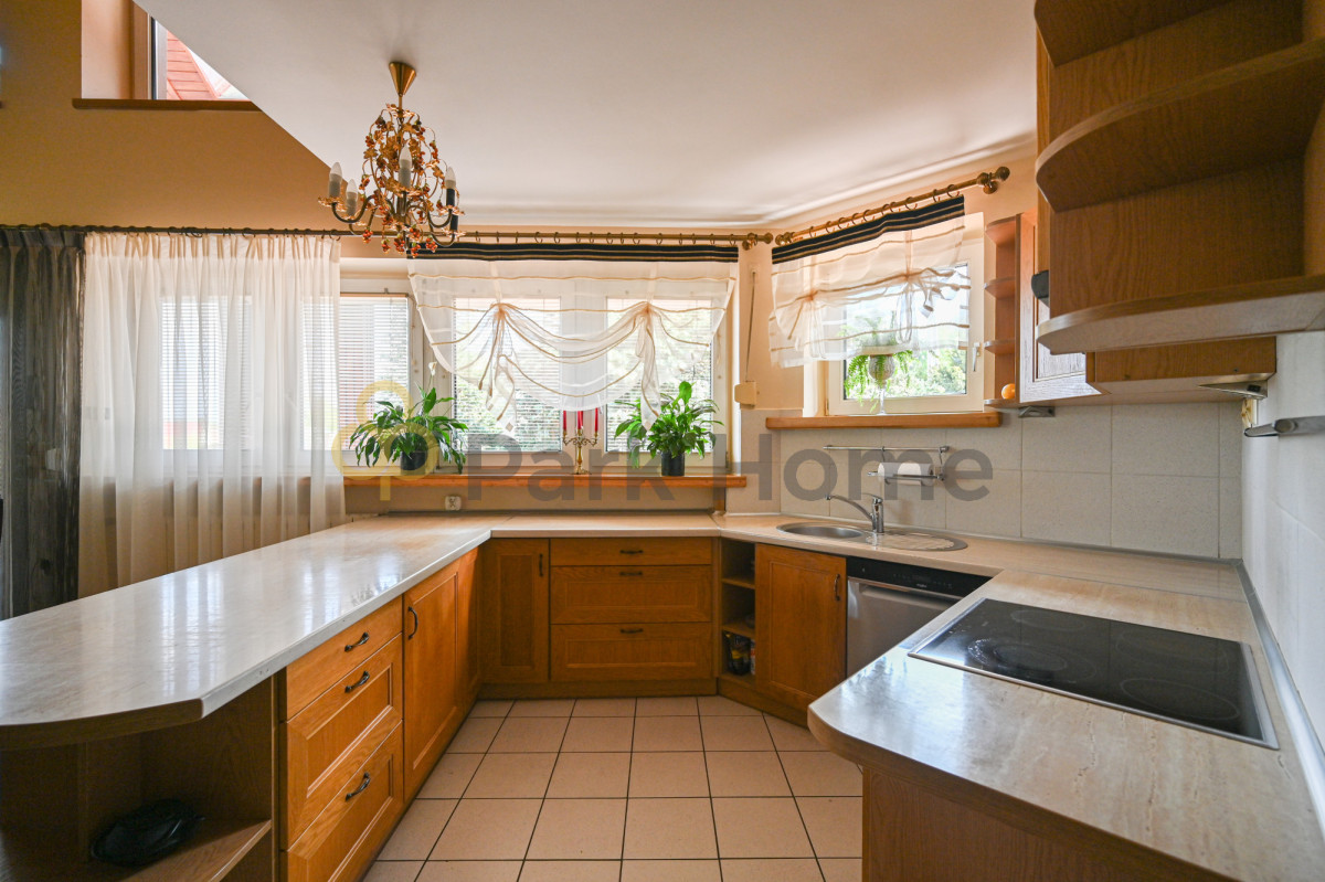Przedstawiam Państwu trzykondygnacyjny dom wolnostojący wybudowany w 1993 roku. Powierzchnia użytkowa części mieszkalnej wynosi 177,31 mkw. Powierzchnia całkowita wraz z piwnicą (117,54 mkw.) wynosi łącznie 294,85 mkw. Do nieruchomości przynależy w pełni ogrodzona, zielona, częściowo zadrzewiona działka o powierzchni 1 664 mkw. Znajduje się na niej sporo miejsca do zagospodarowania w basen, dodatkową wiatę ogrodową, samochodową lub pod inne przeznaczenie. Z tyłu posesja graniczy z małym lasem, do którego łatwo się wybrać na spacer, dzięki furtce przygotowanej w ogrodzeniu. Na działce wykonane są dwa wjazdy, w tym jeden prowadzący do szerokiego garażu z bramą automatyczną oraz drugi na działkę. Dojazd stanowią drogi wykonane z kostki brukowej. Dom jest schowany w głębi działki co zwiększa poczucie prywatności, tak samo jak taras położony zdecydowanie powyżej poziomu drogi i zwrócony głównie od słonecznej strony południowej. Dom sprzedawany jest przez pierwszych właścicieli, którzy go wybudowali.