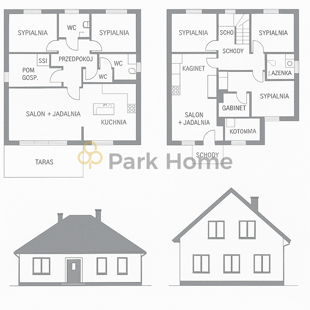 Na zdjęciach przykładowe wizualizację domów.