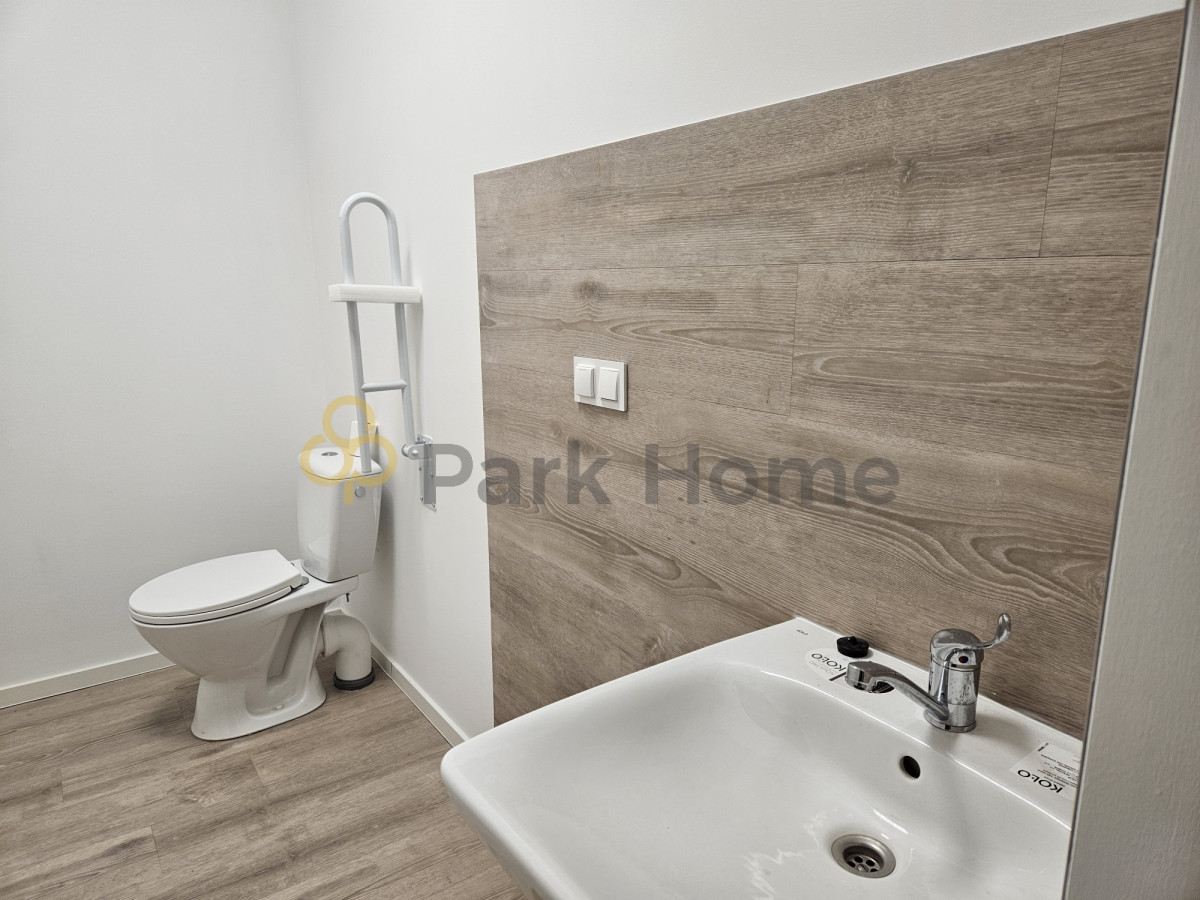 Lokal jest nowy, znajduje się na parterze i ma bezpośrednie wejście z parkingu. Powierzchnia całkowita wynosi 57,22 m² i składa się z następujących pomieszczeń: