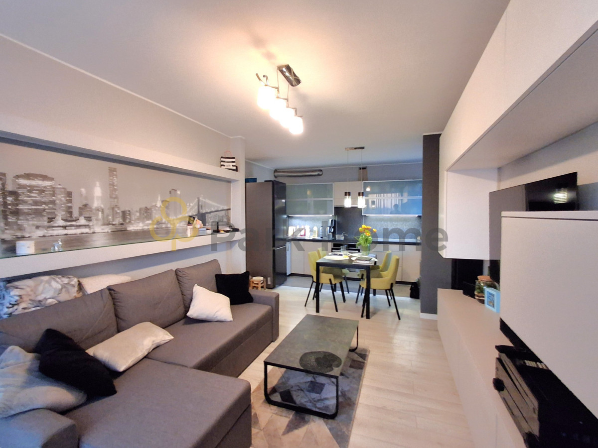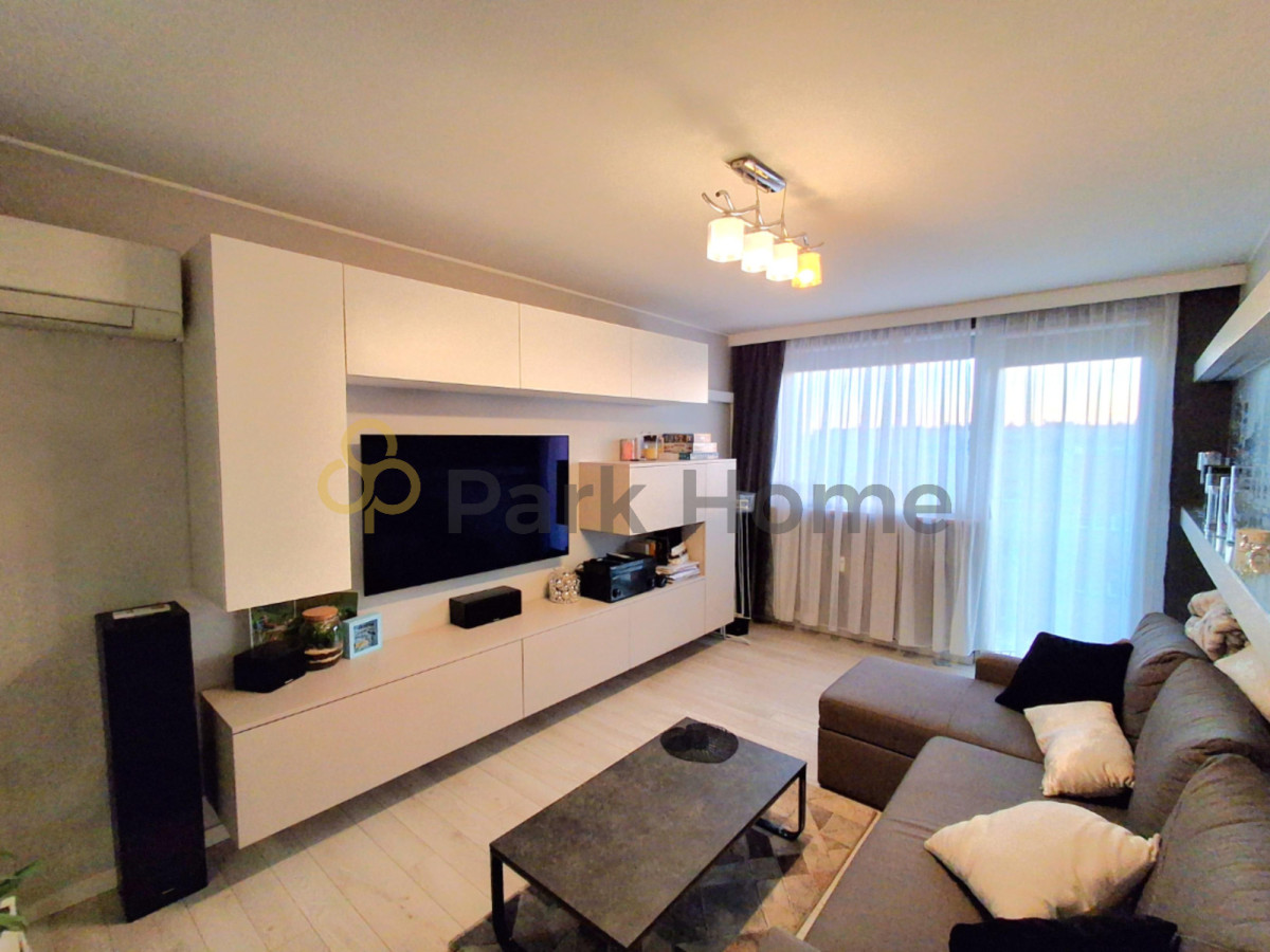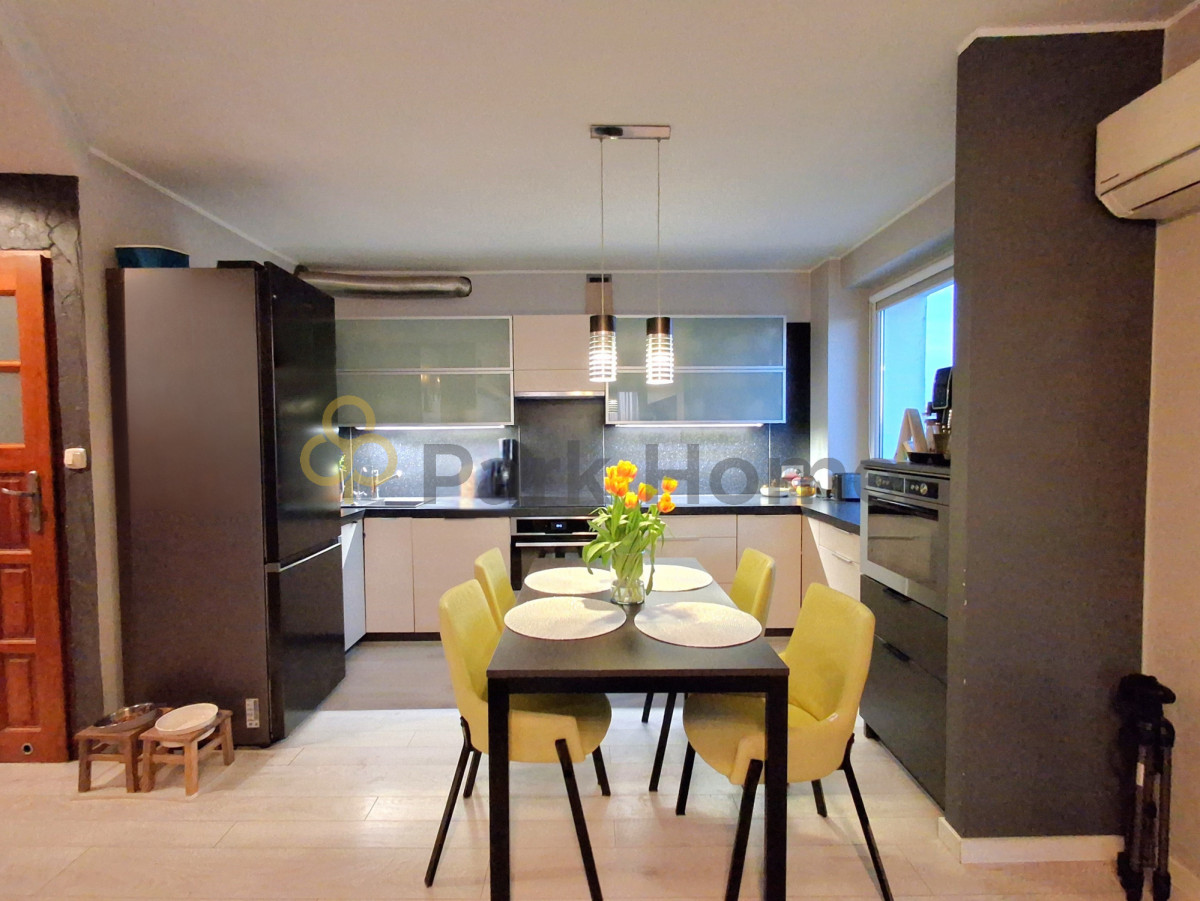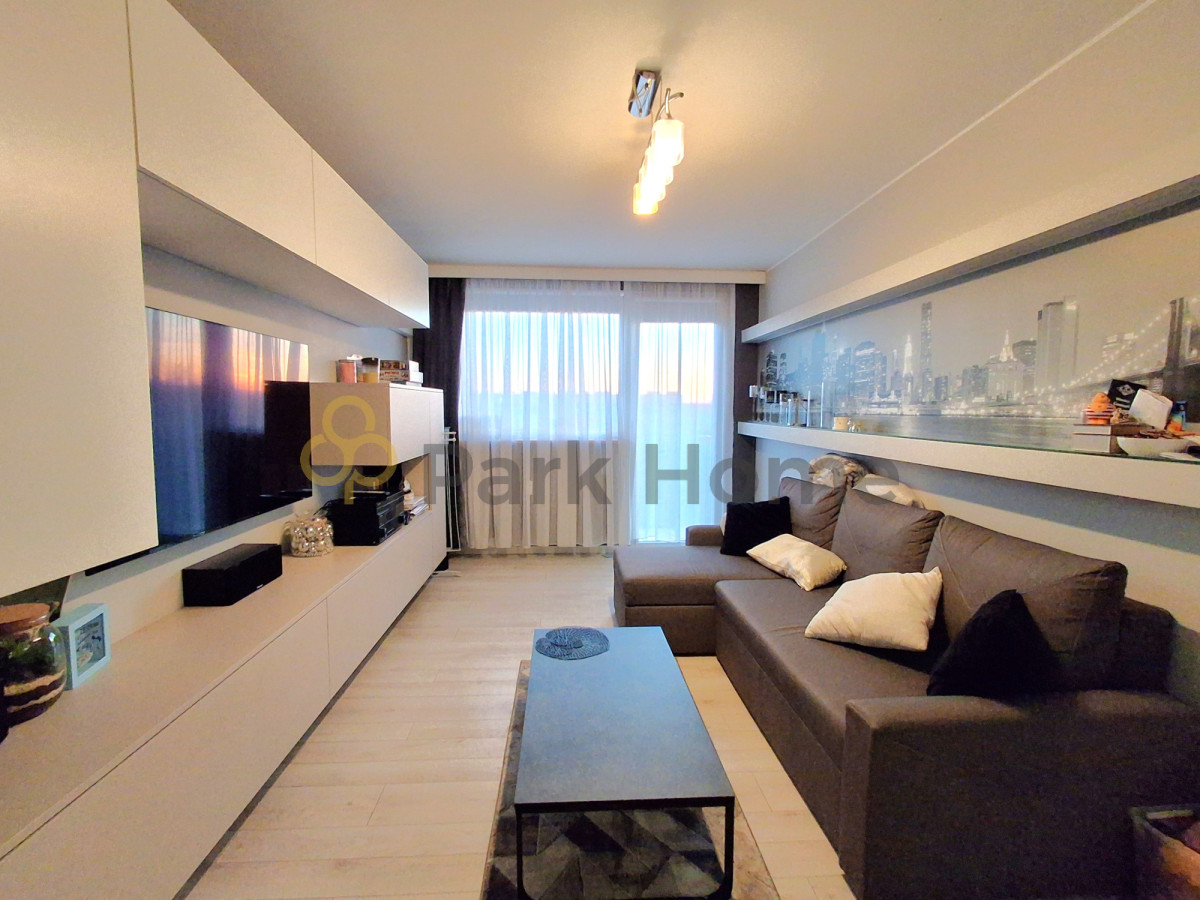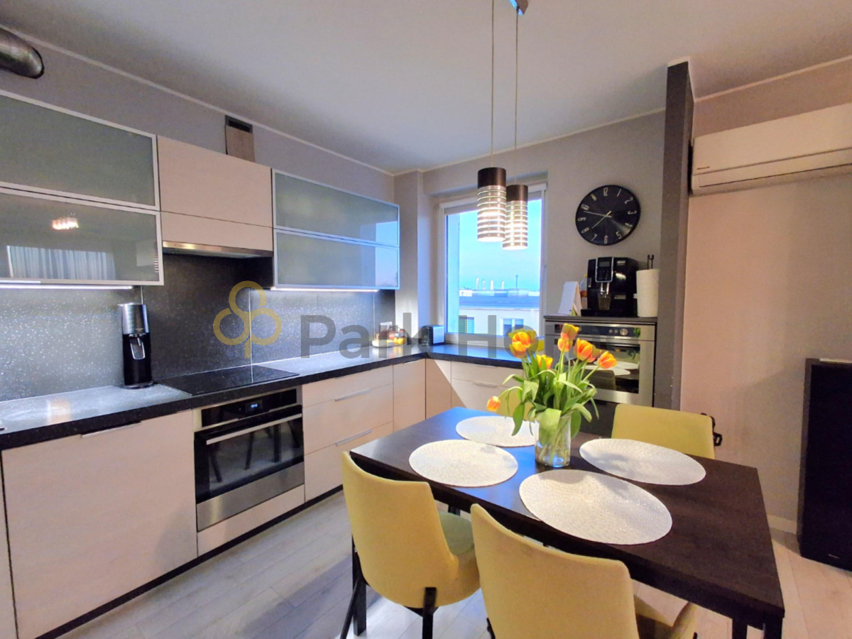 Salon jest klimatyzowany, a nowoczesne meble, w tym zabudowa wisząca, pozostają na wyposażeniu.
