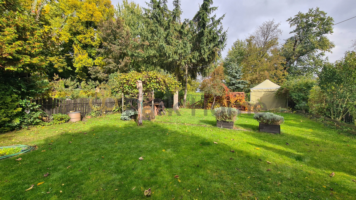 Piękny ogród z miejscem do wypoczynku i zielenią, idealny na letnie popołudnia.