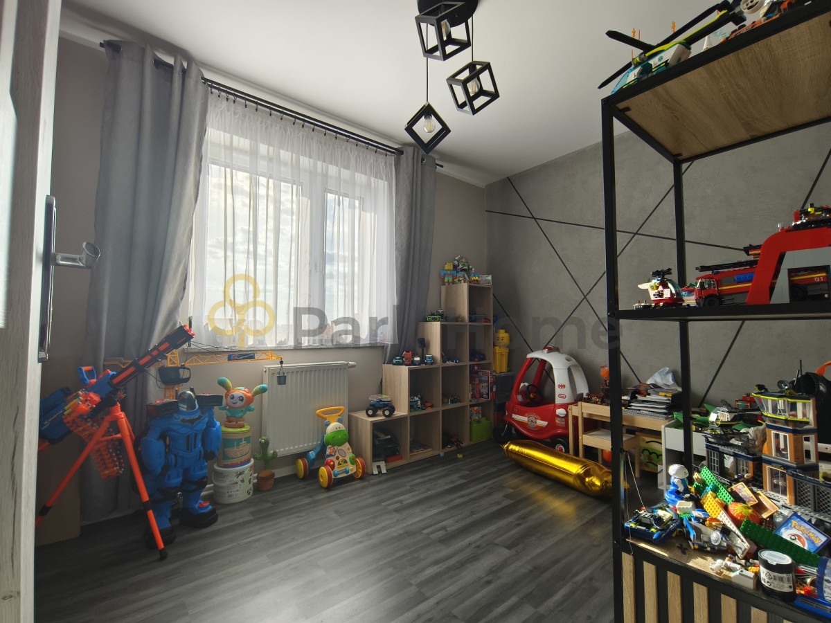 Na drugim poziomie o powierzchni 28 m2 znajdują się pokój i niezależna duża sypialnia z zabudowaną garderobą, ubikacja i pomieszczenie gospodarcze.