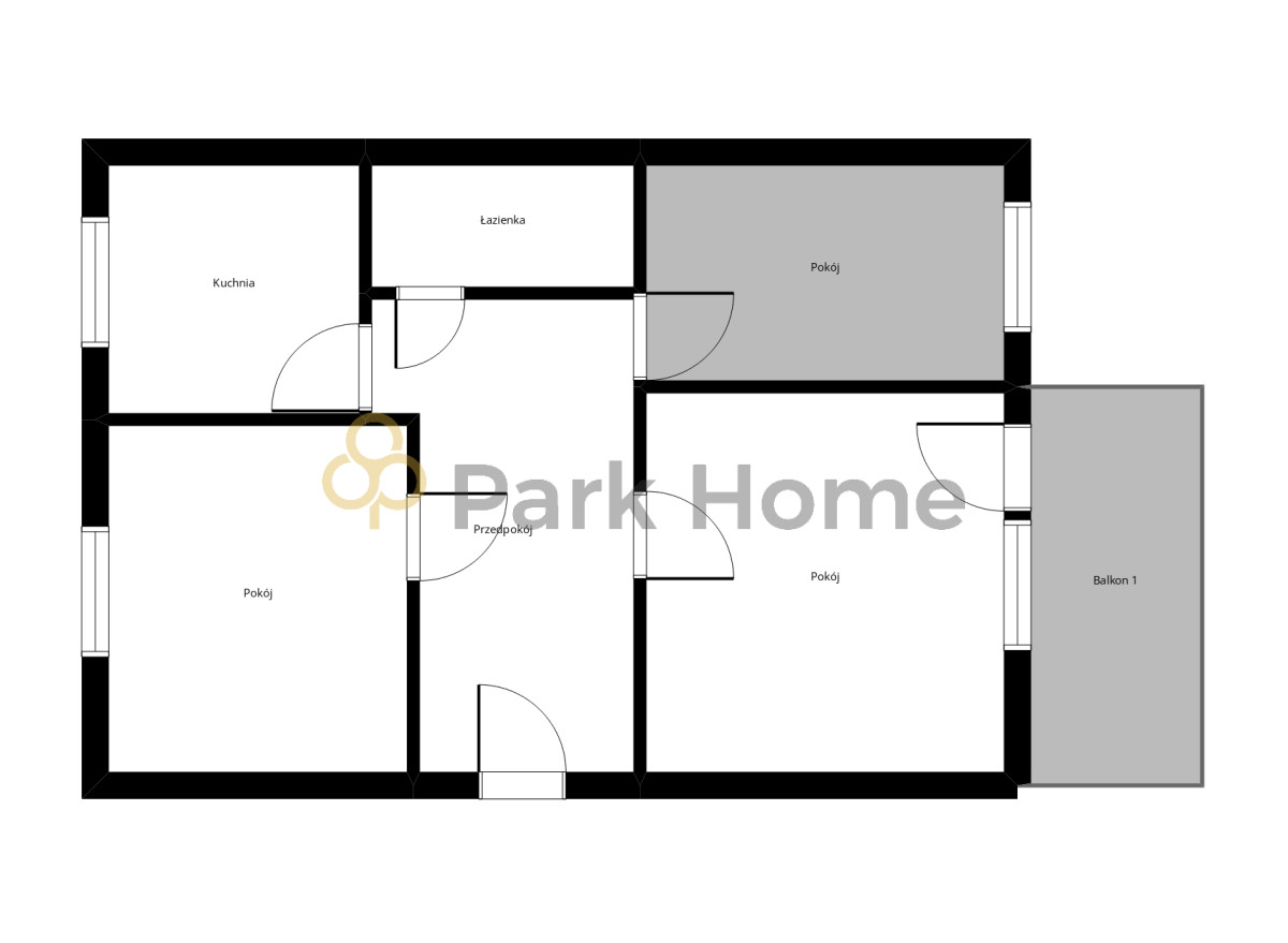 * Pierwszego pokoju:** Większy pokój z wyjściem na **balkon**. Znajduje się tu łóżko, biurko, szafa