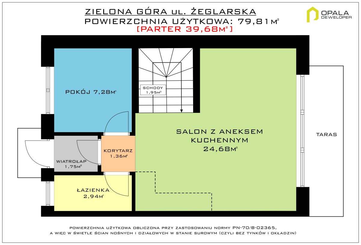 - salon z aneksem kuchennym 24,68 m2