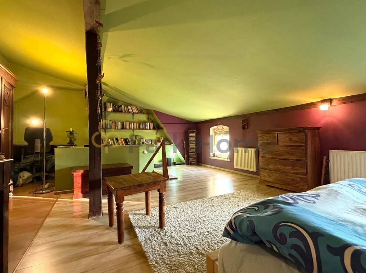 • duża sypialnia / pokój na poddaszu (do pokoju prowadzą schody z salonu)