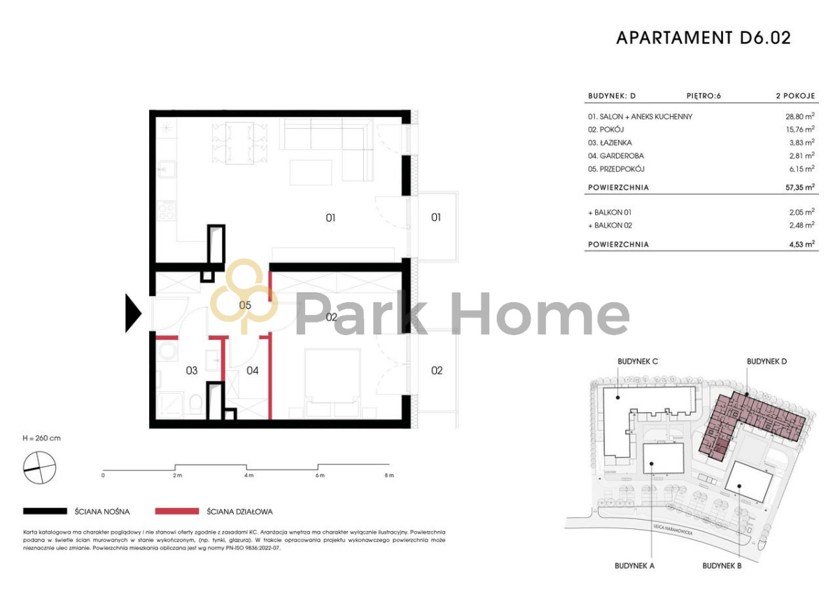 Dodatkowo: dwa balkony (2,06 m2 oraz 2,49 m2)
